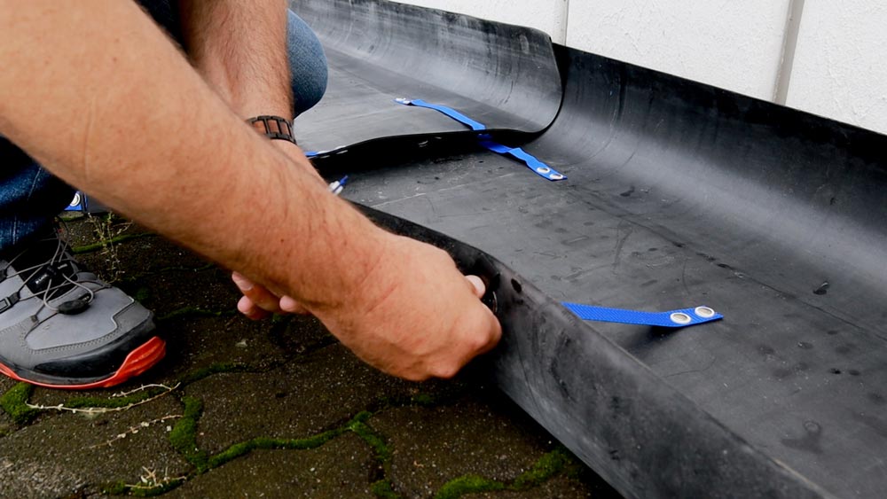 - In einer Auffangwanne rund um die Fassade wird das Abwasser bei der Reinigung gesammelt