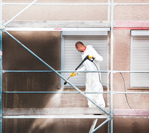 Bei Reinigungsarbeiten gelangen oft die Jahrzehnte alten und in der Regel mit hohen Schwermetall belasteten Ablagerungen und Farbpartikel auf den Fassaden ungefiltert ins Abwasser.